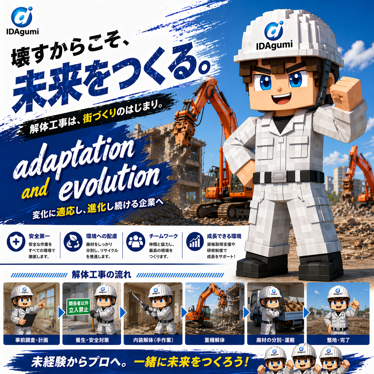 お知らせ 2026.04.24 今後、AIに代替される可能性が高い職業は多岐にわたります。 自動化・無人化が進む中で私たちの会社でもAIを取り入れて膨大なデータから積算・構造計算・安全管理などの業務の効率化もあり少数精鋭で運営が可能となっておりますが、工事現場でAIは安全管理は出来ますが工事の進捗は、現場で働く職人さんの活躍で日々前に進みます。 井田組では人が主役の職場として職人いきいき宣言を行い、未経験でも安心して働ける職場づくりを整えております。